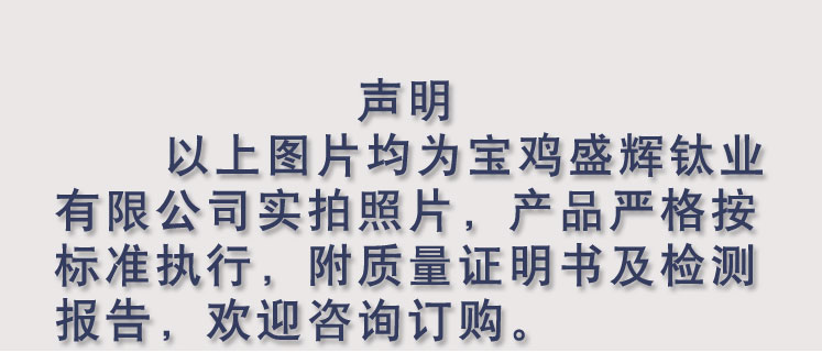 寶雞盛輝鈦業有限公司是一家主要從事鈦及鈦合金棒,鈦環,鈦法蘭及鈦合金板材的高新技術企業,公司提供鈦環,鈦合金棒批發,鈦環的生產工藝服務,以人為本,質量取勝為宗旨:18791863990,18740375975