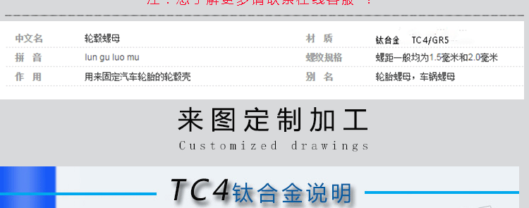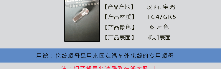 鈦合金標準件 TC4 汽車輪轂螺母