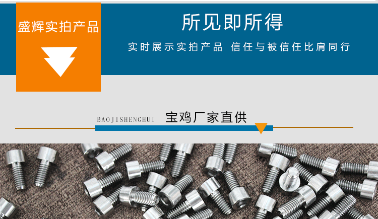 寶雞盛輝鈦業專業生產銷售各種規格的鈦棒,鈦加工件,各類鈦標準件,鈦鍛件,鈦異形件等。主要設備有:加工中心,數控車床,普通車床等。設備齊全,生產能力強,可根據客戶要求來圖加工。