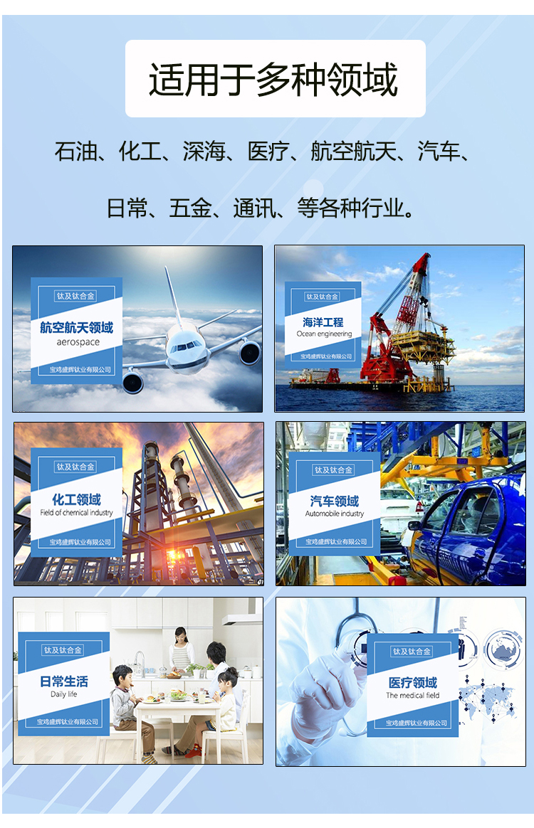 寶雞盛輝鈦業有限公司是一家主要從事鈦及鈦合金棒,鈦環,鈦法蘭及鈦合金板材的高新技術企業,公司提供鈦環,鈦合金棒批發,鈦環的生產工藝服務,以人為本,質量取勝為宗旨:18791863990,18740375975