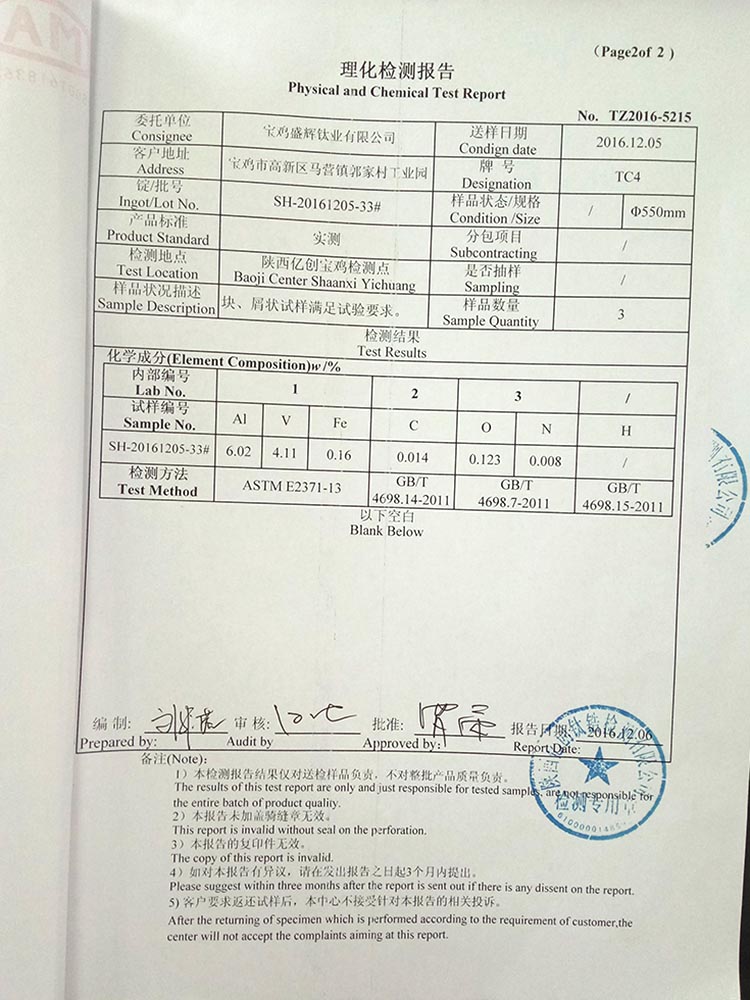 SH-20161205-33#TC4 化學(xué)成分
