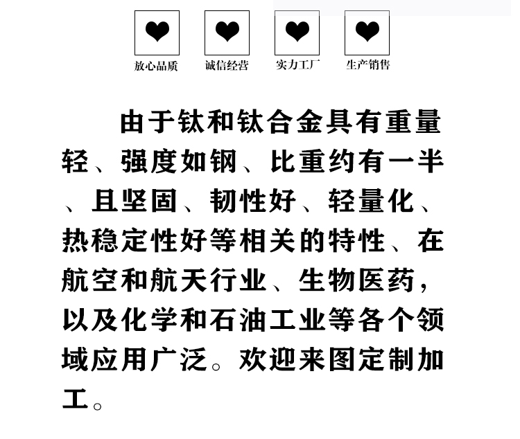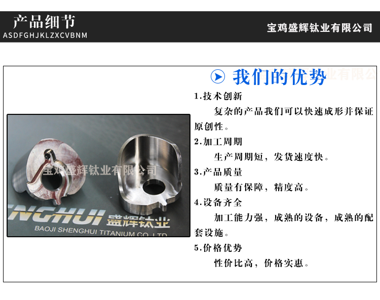 寶雞盛輝鈦業有限公司是一家主要從事鈦及鈦合金棒,鈦環,鈦法蘭及鈦合金板材的高新技術企業,公司提供鈦環,鈦合金棒批發,鈦環的生產工藝服務,以人為本,質量取勝為宗旨:18791863990,18740375975