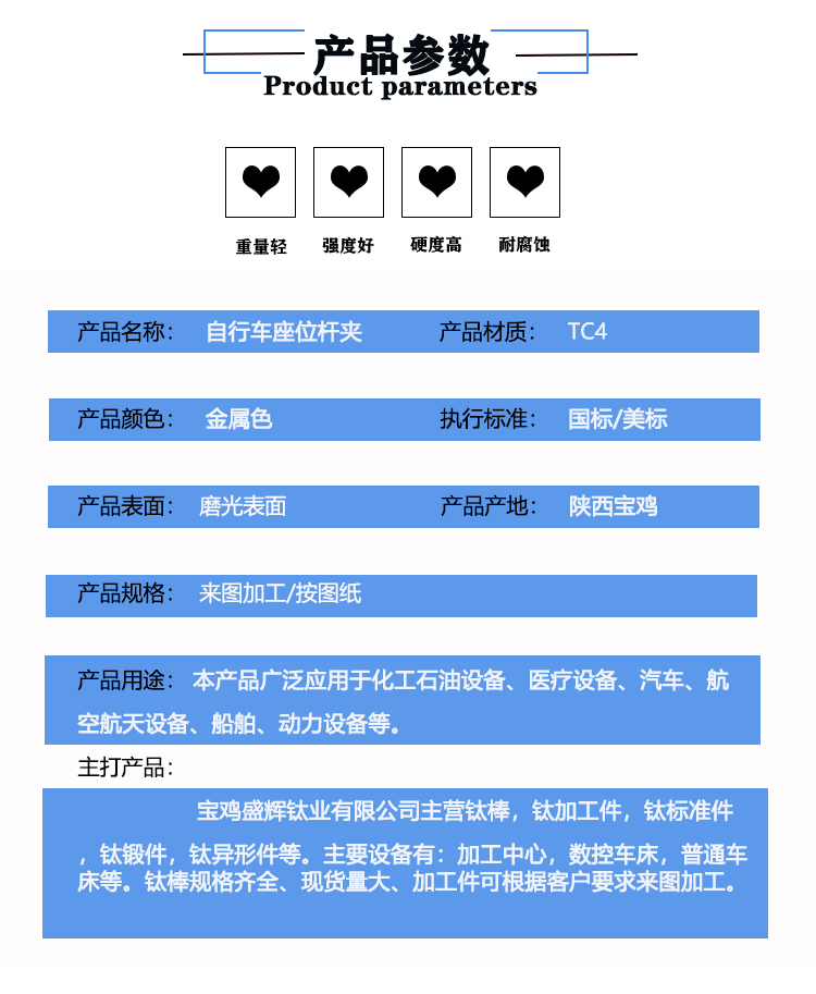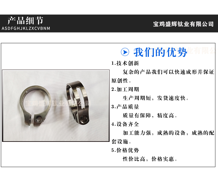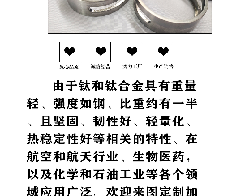 寶雞盛輝鈦業(yè)有限公司是一家主要從事鈦及鈦合金棒,鈦環(huán),鈦法蘭及鈦合金板材的高新技術(shù)企業(yè),公司提供鈦環(huán),鈦合金棒批發(fā),鈦環(huán)的生產(chǎn)工藝服務,以人為本,質(zhì)量取勝為宗旨:18791863990,18740375975