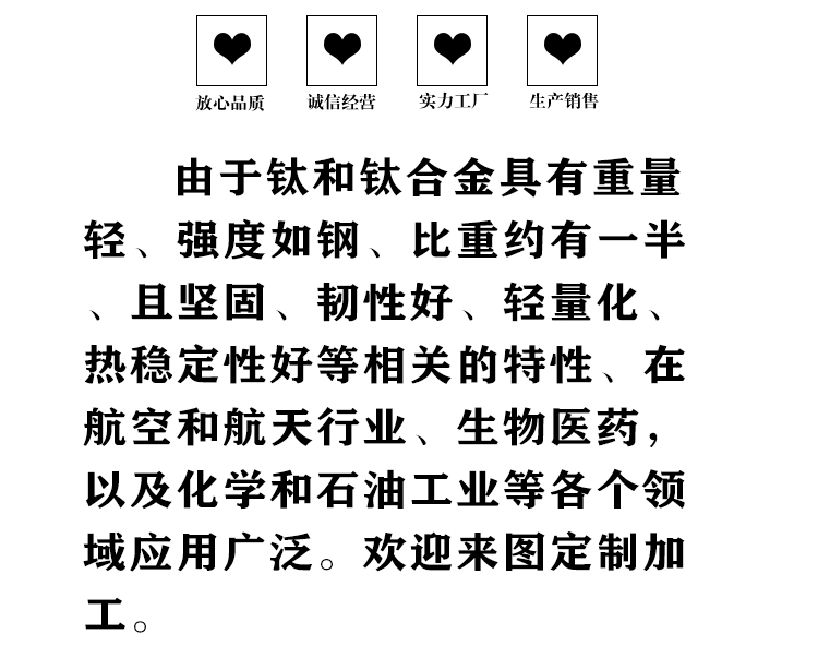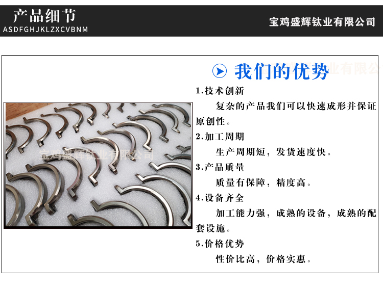 寶雞盛輝鈦業有限公司是一家主要從事鈦及鈦合金棒,鈦環,鈦法蘭及鈦合金板材的高新技術企業,公司提供鈦環,鈦合金棒批發,鈦環的生產工藝服務,以人為本,質量取勝為宗旨:18791863990,18740375975