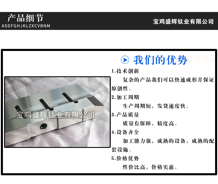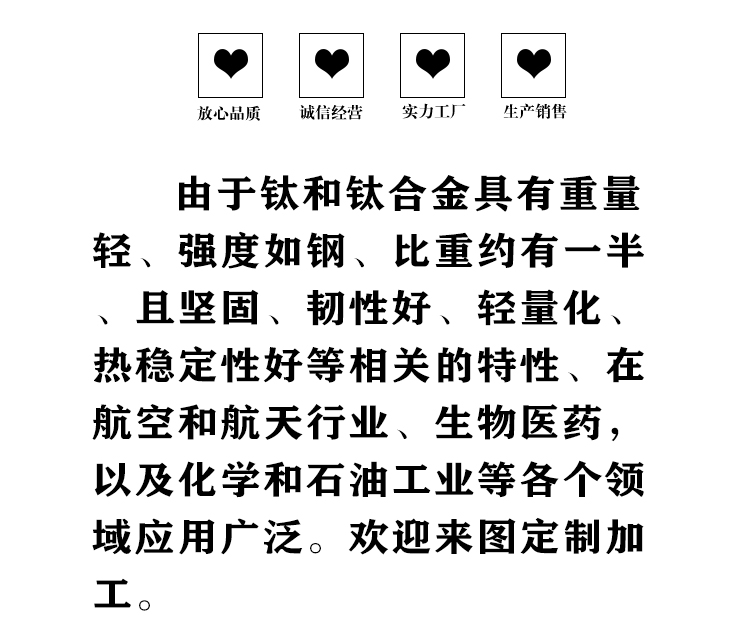 寶雞盛輝鈦業有限公司是一家主要從事鈦及鈦合金棒,鈦環,鈦法蘭及鈦合金板材的高新技術企業,公司提供鈦環,鈦合金棒批發,鈦環的生產工藝服務,以人為本,質量取勝為宗旨:18791863990,18740375975