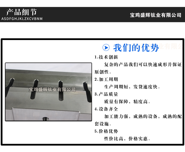 寶雞盛輝鈦業有限公司是一家主要從事鈦及鈦合金棒,鈦環,鈦法蘭及鈦合金板材的高新技術企業,公司提供鈦環,鈦合金棒批發,鈦環的生產工藝服務,以人為本,質量取勝為宗旨:18791863990,18740375975