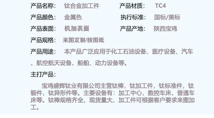 寶雞盛輝鈦業有限公司主營鈦棒,鈦加工件,鈦標準件,鈦鍛件,鈦異