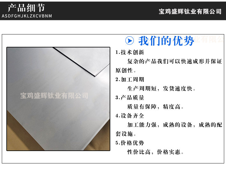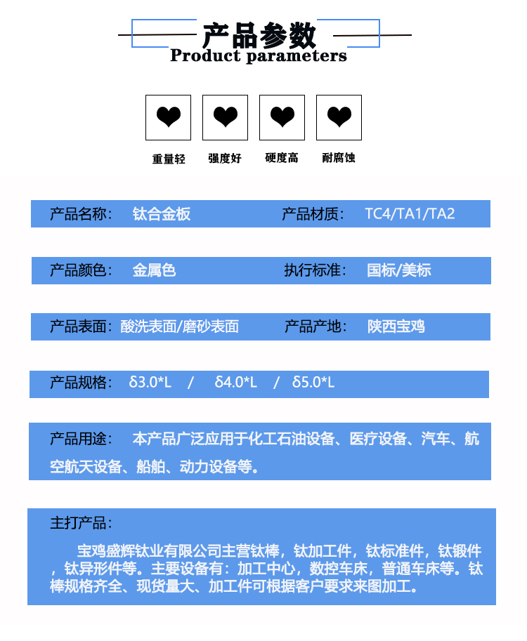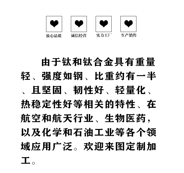 寶雞盛輝鈦業有限公司是一家主要從事鈦及鈦合金棒,鈦環,鈦法蘭及鈦合金板材的高新技術企業,公司提供鈦環,鈦合金棒批發,鈦環的生產工藝服務,以人為本,質量取勝為宗旨:18791863990,18740375975