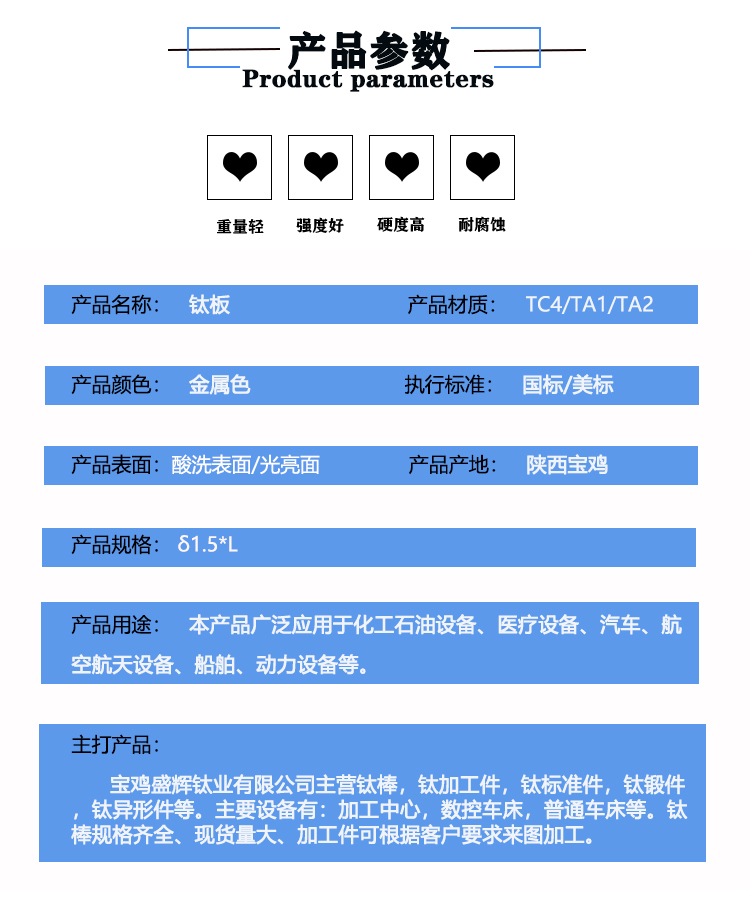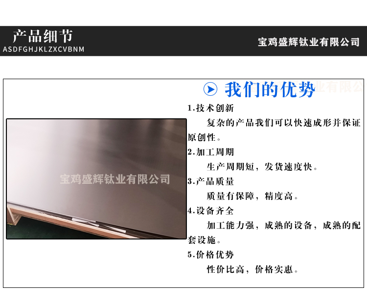 寶雞盛輝鈦業有限公司是一家主要從事鈦及鈦合金棒,鈦環,鈦法蘭及鈦合金板材的高新技術企業,公司提供鈦環,鈦合金棒批發,鈦環的生產工藝服務,以人為本,質量取勝為宗旨:18791863990,18740375975