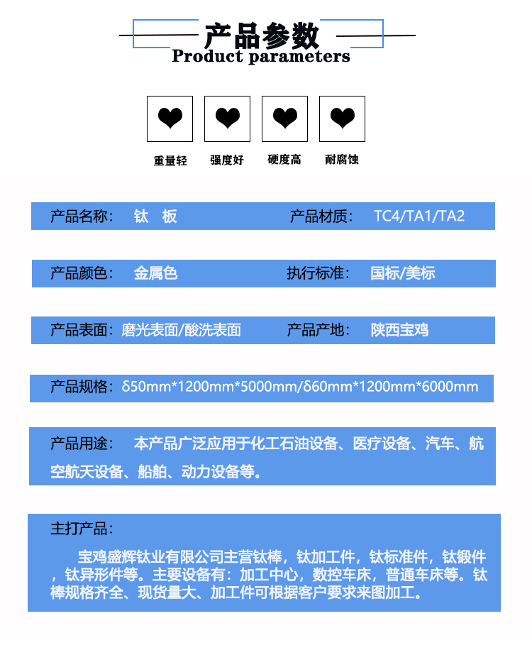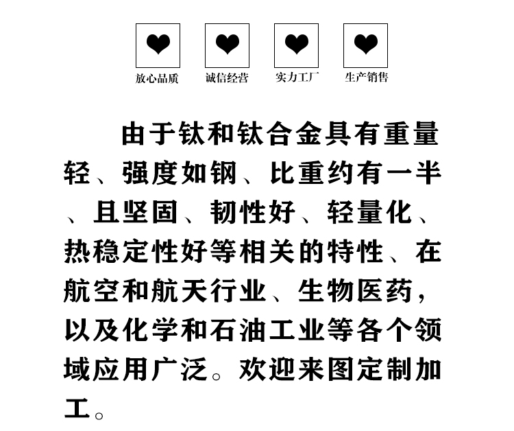 寶雞盛輝鈦業有限公司是一家主要從事鈦及鈦合金棒,鈦環,鈦法蘭及鈦合金板材的高新技術企業,公司提供鈦環,鈦合金棒批發,鈦環的生產工藝服務,以人為本,質量取勝為宗旨:18791863990,18740375975
