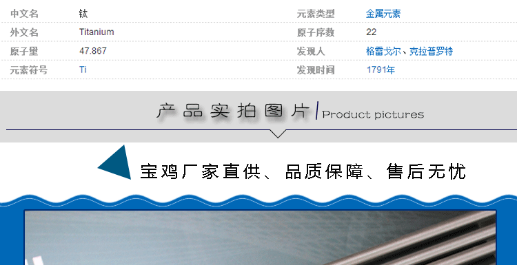 為了幫助客戶辨別鈦商品的品質優劣,確保鈦產品的來源渠道正規,本公司可提供第三方檢測機構證明書。客戶可以清楚的知道商品的的名稱、材質、批號、成分等詳細信息。確保鈦產品的優良品質。