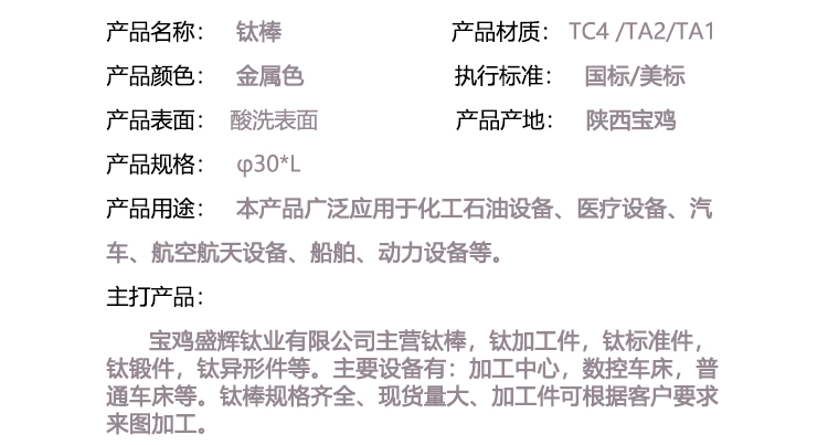 寶雞盛輝鈦業有限公司主營鈦棒,鈦加工件,鈦標準件,鈦鍛件,鈦異