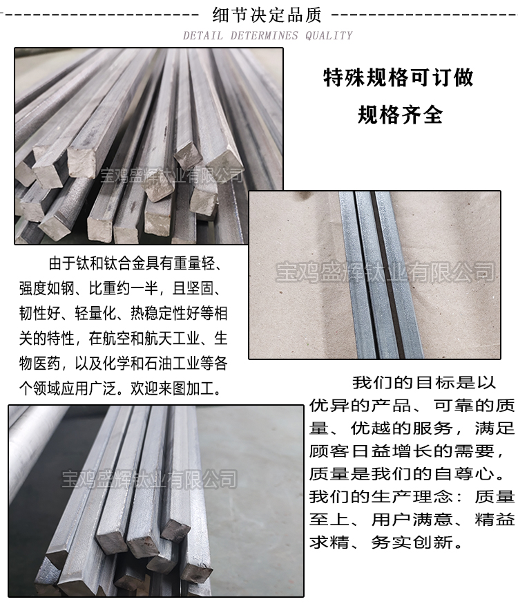 寶雞盛輝鈦業有限公司主營鈦棒,鈦加工件,鈦標準件,鈦鍛件,鈦異形件等。