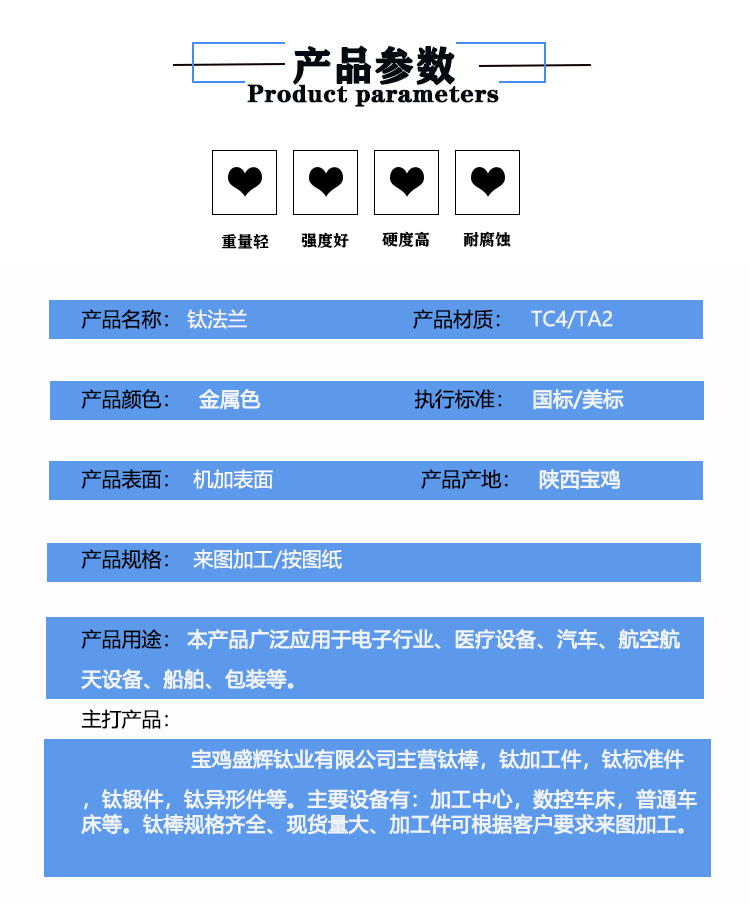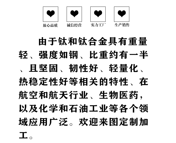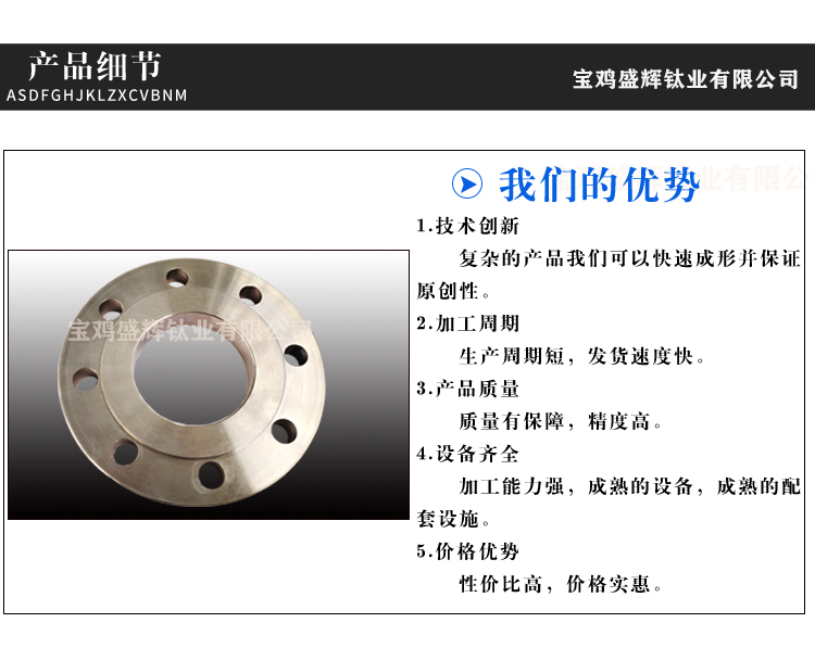 寶雞盛輝鈦業有限公司是一家主要從事鈦及鈦合金棒,鈦環,鈦法蘭及鈦合金板材的高新技術企業,公司提供鈦環,鈦合金棒批發,鈦環的生產工藝服務,以人為本,質量取勝為宗旨:18791863990,18740375975