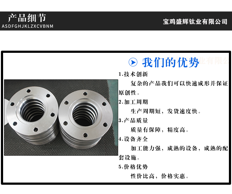 寶雞盛輝鈦業有限公司是一家主要從事鈦及鈦合金棒,鈦環,鈦法蘭及鈦合金板材的高新技術企業,公司提供鈦環,鈦合金棒批發,鈦環的生產工藝服務,以人為本,質量取勝為宗旨:18791863990,18740375975