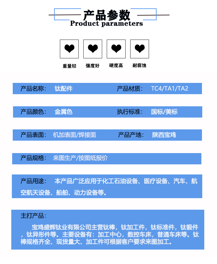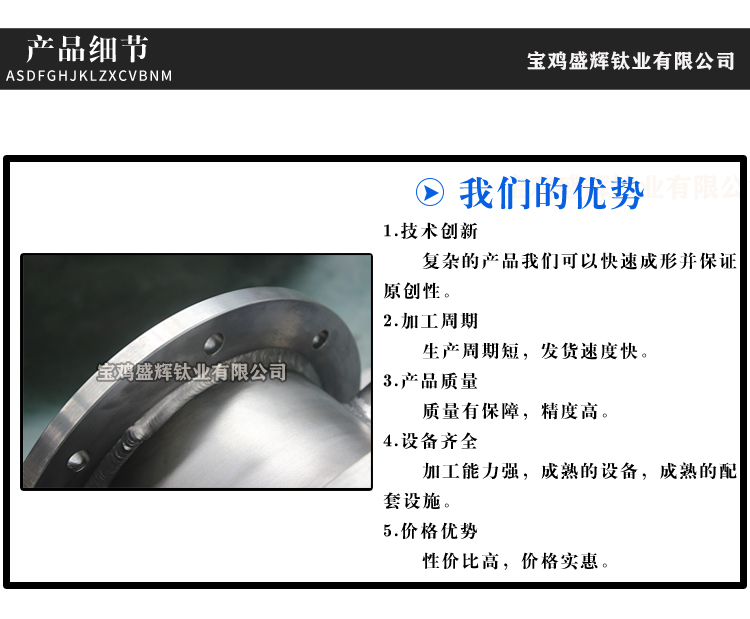 寶雞盛輝鈦業有限公司是一家主要從事鈦及鈦合金棒,鈦環,鈦法蘭及鈦合金板材的高新技術企業,公司提供鈦環,鈦合金棒批發,鈦環的生產工藝服務,以人為本,質量取勝為宗旨:18791863990,18740375975