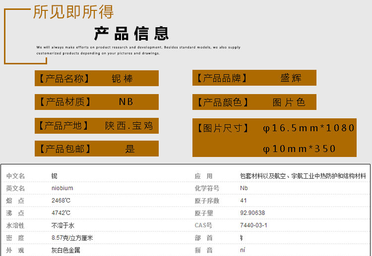 鈮棒直徑10mm直徑16.5mm NB