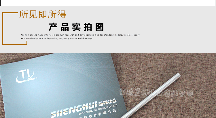 從細節出發,站在專業的角度,始終如一品質的最終使用價值,產品和服務同時送達盛輝鈦業客戶的承諾。寶雞盛輝,將以不變的摯誠,用心聆聽,貼心關懷,以至全至尊的服務,與新老客戶攜手共贏!